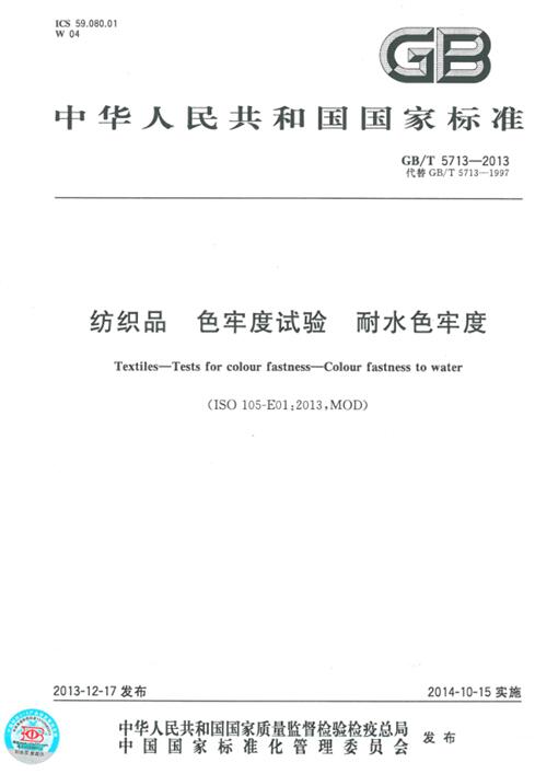 GB/T5713-2013《紡織品 色牢度試驗(yàn) 耐水色牢度》